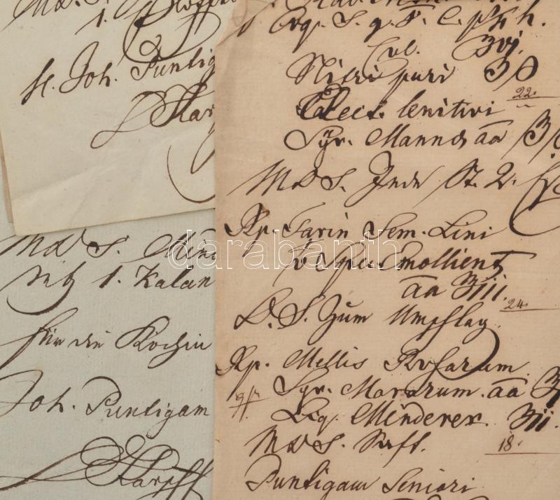 Beschreibung: 1859 Győr, kézzel írt gyógyszertári receptek, 14 db