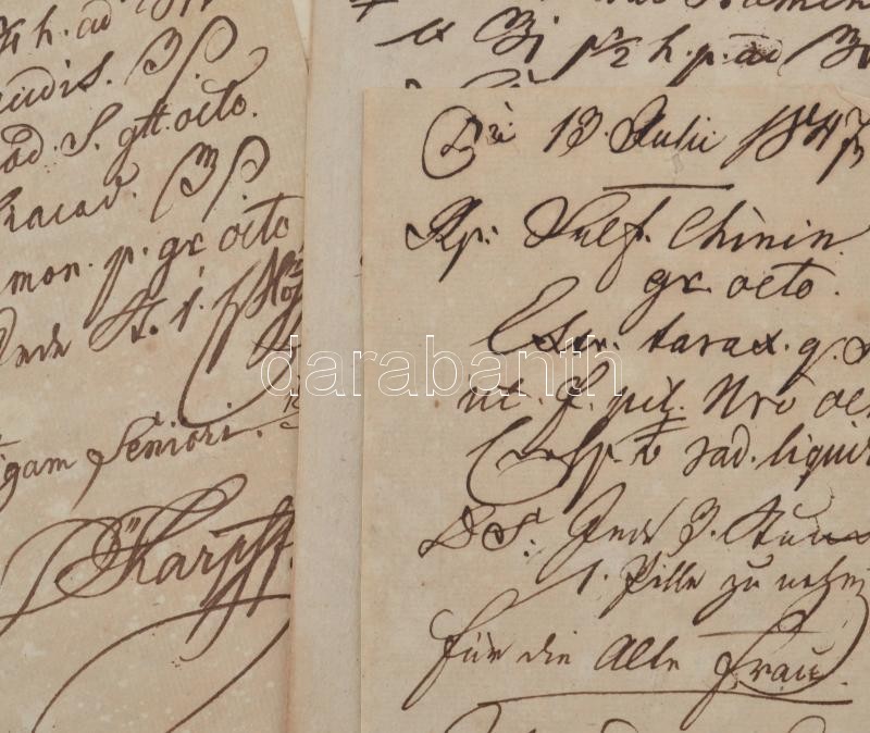 1859 Győr, kézzel írt gyógyszertári receptek, 14 db https://www.darabanth.com/de/425-Fernauktion/425.0/Kunst-Dokumente-andere-Sammelgebiete/Dokument~500019/1859-Gyor-kezzel-irt-gyogyszertari-receptek-14-db~II2706543