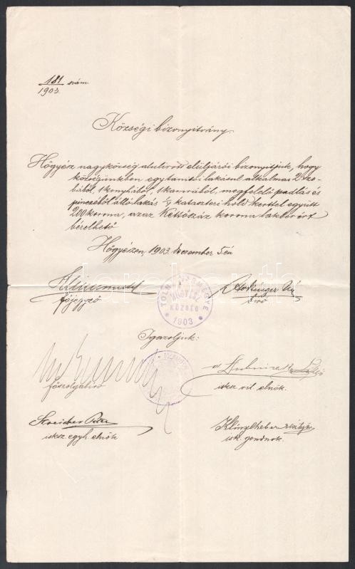 1903 Hőgyész, községi bizonyítvány https://www.darabanth.com/de/425-Fernauktion/425.0/Kunst-Dokumente-andere-Sammelgebiete/Dokument~500019/1903-Hogyesz-kozsegi-bizonyitvany~II2705886