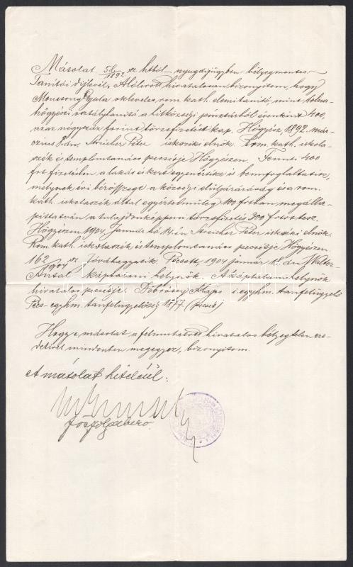 Beschreibung: 1903 Hőgyész, községi bizonyítvány
