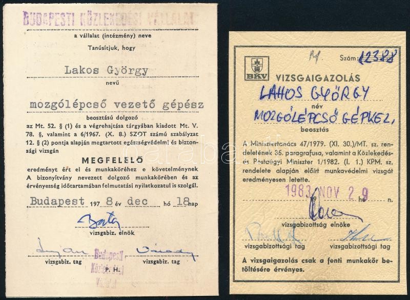 1978, 1983 BKV mozgólépcső-kezelői igazolvány https://www.darabanth.com/de/425-Fernauktion/425.0/Kunst-Dokumente-andere-Sammelgebiete/Dokument~500019/1978-1983-BKV-mozgolepcso-kezeloi-igazolvany~II2703746