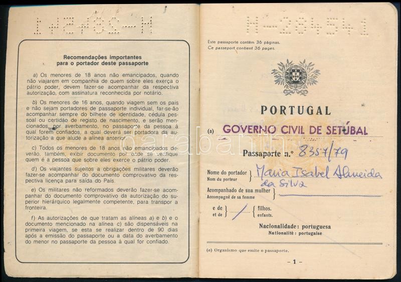 1979 Portugál fényképes útlevél https://www.darabanth.com/de/425-Fernauktion/425.0/Kunst-Dokumente-andere-Sammelgebiete/Dokument~500019/1979-Portugal-fenykepes-utlevel~II2703760