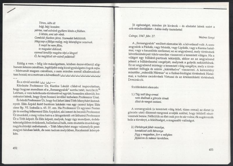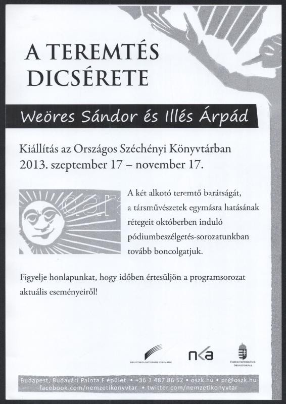 2013 A teremtés dicsérete, Weöres Sándor és Illés Árpád kiállítás az Országos Széchényi Könyvtárban, kiállítási meghívó + Kivonat a kiállítás anyagából (a Sorsangyalok c. vers elemzése), fénymásolat, 12 p.