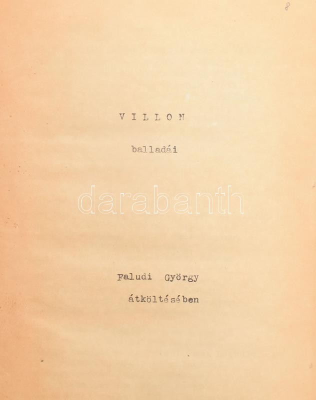 cca 1938 Villon Balladái Faludi György átköltésében. 68. gépelt oldal ... https://www.darabanth.com/de/425-Fernauktion/425.0/Kunst-Dokumente-andere-Sammelgebiete/Drucksachen~1000002/cca-1938-Villon-Balladai-Faludi-Gyorgy-atkolteseben-68-gepelt-oldal-Korabeli-egeszvaszon-~II2705129