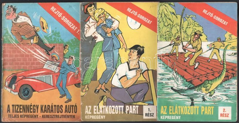 Beschreibung: cca 1985 3 db Rejtő Jenő képregény: A tizennégy karátos autó, Az elátkozott part 1-2.
