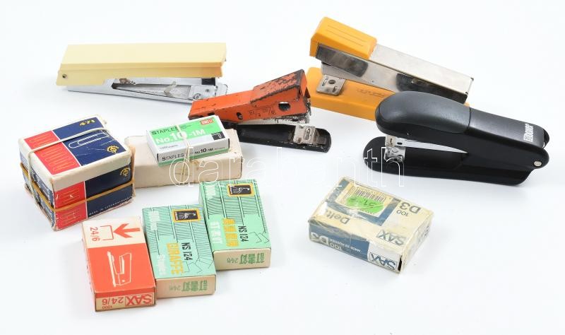 5 db retró tűzőgép (4 nagyobb, egy kisebb) + 6 doboz vegyes tűzőkapocs https://www.darabanth.com/de/425-Fernauktion/425.0/Kunst-Dokumente-andere-Sammelgebiete/Flohmarkt~500013/5-db-retro-tuzogep-4-nagyobb-egy-kisebb-plus-6-doboz-vegyes-tuzokapocs~II2707120