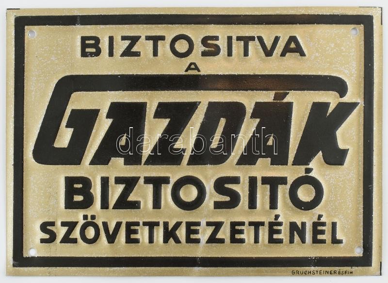 Gazdák biztosító fém tábla 14x10 cm https://www.darabanth.com/de/425-Fernauktion/425.0/Kunst-Dokumente-andere-Sammelgebiete/Flohmarkt~500013/Gazdak-biztosito-fem-tabla-14x10-cm~II2712223