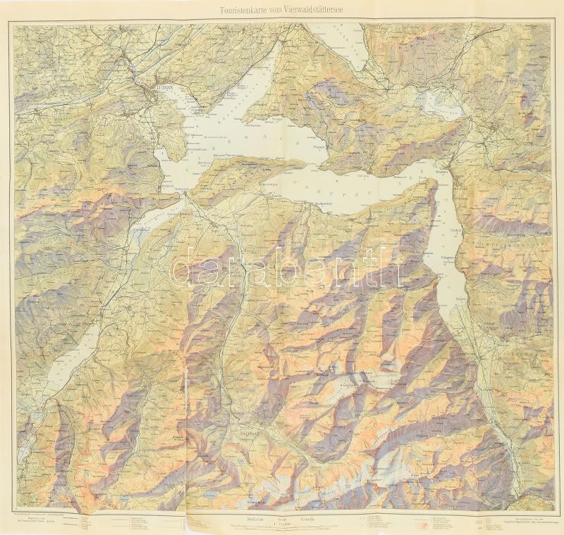 Beschreibung: Touristenkarte vom Vierwaldstättersee, kiadja: Dampschiffgesellschaft des Vierwaldstättersee, 1: 75 000, hátoldalán sok képpel, 54×59 cm