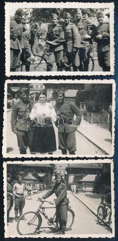 Beschreibung: 1939 Huszt 3 db katonai fotó Biciklis katonák, stb 6x9 cm