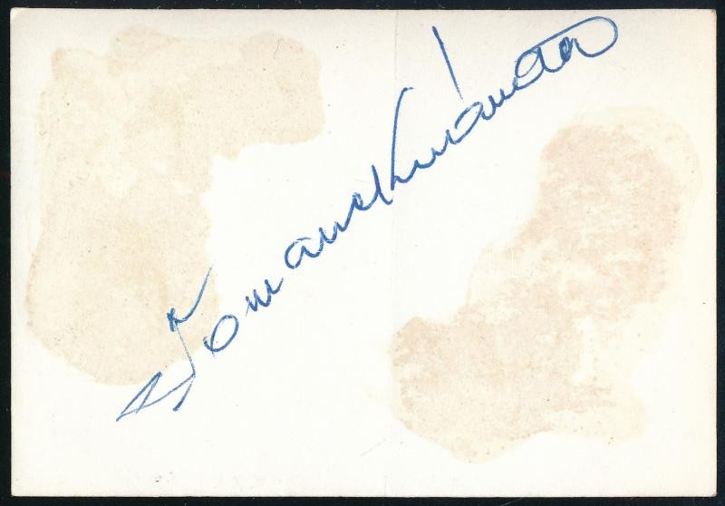 Beschreibung: Tomanek Nándor (1922-1988) kétszeres Jászai Mari-díjas színművész aláírása az őt ábrázoló fotó hátoldalán