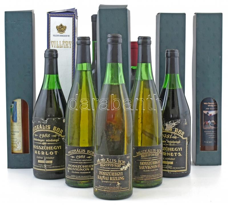 Beschreibung: Alkalmi borválogatás: 1993 Nemes Nádudvari Kadarka Sümegi József, Polgár, Villányi zweigelt, hosszúhetényi borok összesen 12 bontatlan palack