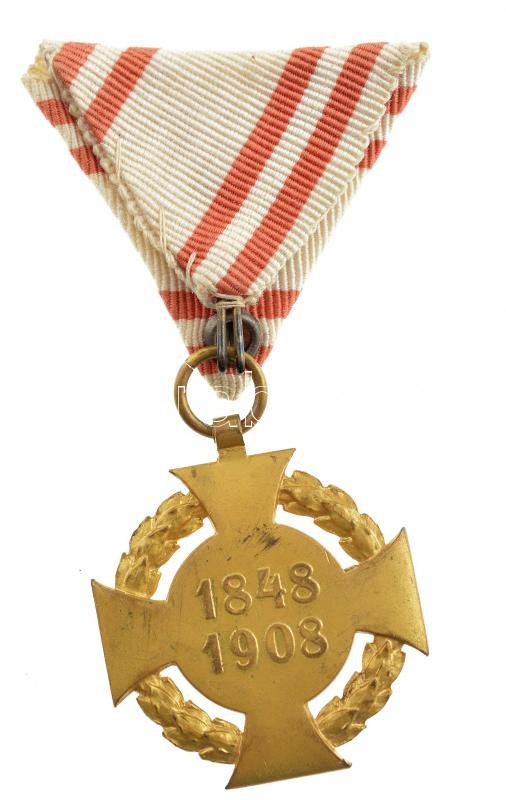 1908. "Katonai Jubileumi Kereszt" aranyozott bronz kitüntetés nem saját mellszalaggal T:2 kopott aranyozás Hungary 1908. "Diamond Jubilee Cross for the Armed Forces" gilt bronze decoration with not own ribbon C:XF worn gold plating NMK 269.