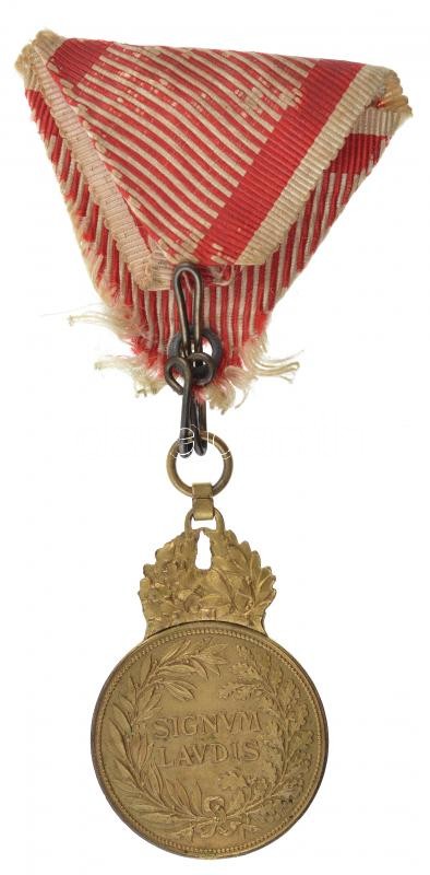 Hungary 1917. "Bronze Militarty Order of Merit on wartime ribbon with swords" gilt bronze decoration, with original worn ribbon, and "BRONZE" hallmark on the edge. Sign.: Kautsch C:XF slightly worn gilding
