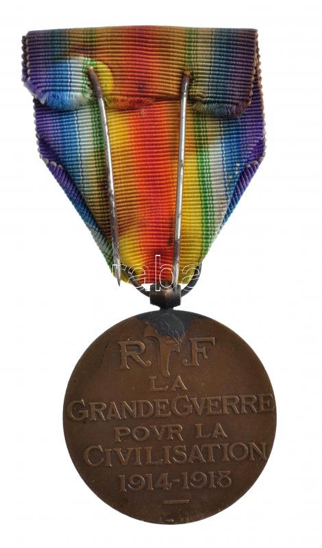 Franciaország 1922. "I. Világháborús Győzelemérem / Szövetséges emlékérem" bronz kitüntetés mellszalagon. Szign.:A. Morlon T:2 patina, foltos mellszalag
