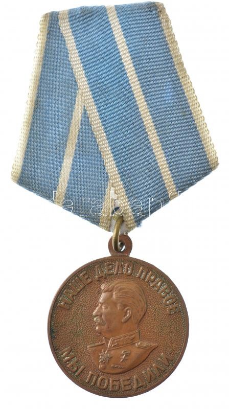 Szovjetunió 1945. "A Németország felett aratott győzelemért az 1941-1945-ös Nagy Honvédő Háborúban" sárgaréz kitüntetés nem saját mellszalagon T:2