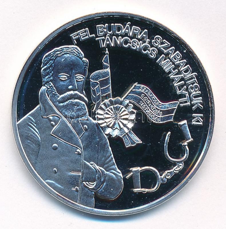 DN "Nemzetünk nagyjai - Táncsics Mihály" kétoldalas Ag emlékérem tanúsítvánnyal (15g/0,333/35mm) T:PP