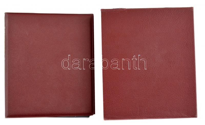 Beschreibung: Bordó színű műbőr gyűrűs album berakólapok nélkül, tokban. Használt, de jó állapotban