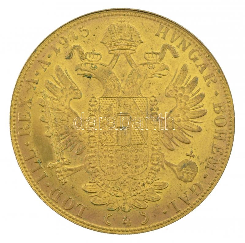 Beschreibung: Ausztria 1915. 4D "Ferenc József" aranyozott fém replika T:1- Austria 1915. 4 Ducat "Franz Joseph" gilt metal replica C:AU