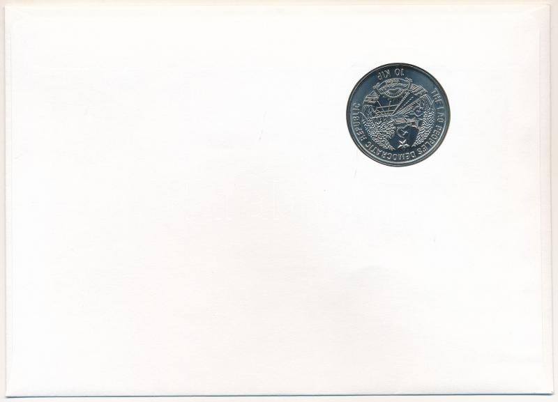 Laos 1991. 10 Kip steel "XXV Summer Olympics 1992 Barcelona - Cycling" non-circulating commemorative coin in envelope with stamp, cancellation and a prospectus in german C:UNC