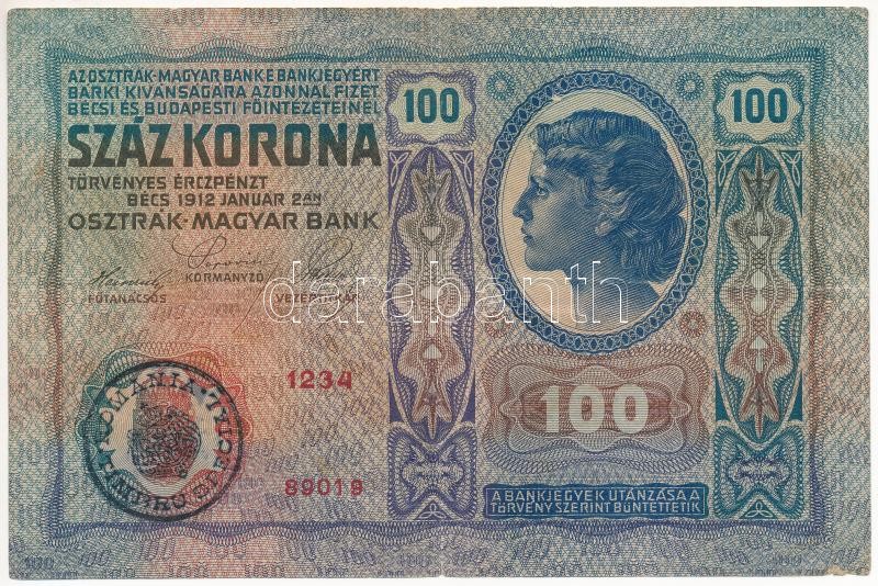 1912. 100K fekete "ROMANIA TIMBRU SPECIAL" felülbélyegzéssel... https://www.darabanth.com/de/425-Fernauktion/425.0/Numismatik/Ungarische-Banknoten~1500007/1912-100K-fekete-ROMANIA-TIMBRU-SPECIAL-felulbelyegzessel-TIII~II2710919