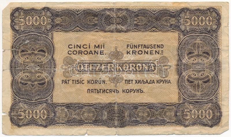Beschreibung: 1923. 5000K "5B06 598260", "Magyar Pénzjegynyomda Rt. Budapest" jelöléssel T:III- szakadások