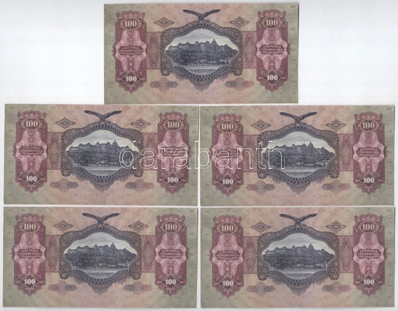 Beschreibung: 1930. 100P (5x) "E 146 031570 - E 146 031575", sorszámkövetők és egyugrású sorszámokkal T:II-III mind szép papír! Adamo P17