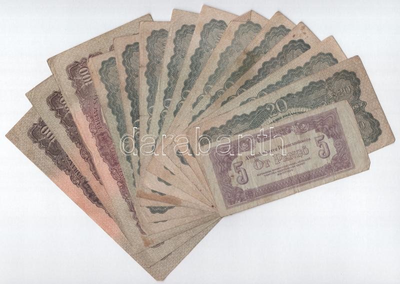 1944. 5P "Vöröshadsereg Parancsnoksága" + 20P "Vöröshad... https://www.darabanth.com/de/425-Fernauktion/425.0/Numismatik/Ungarische-Banknoten~1500007/1944-5P-Voroshadsereg-Parancsnoksaga-plus-20P-Voroshadsereg-Parancsnoksaga-10x-plus-100P-Vo~II2704845