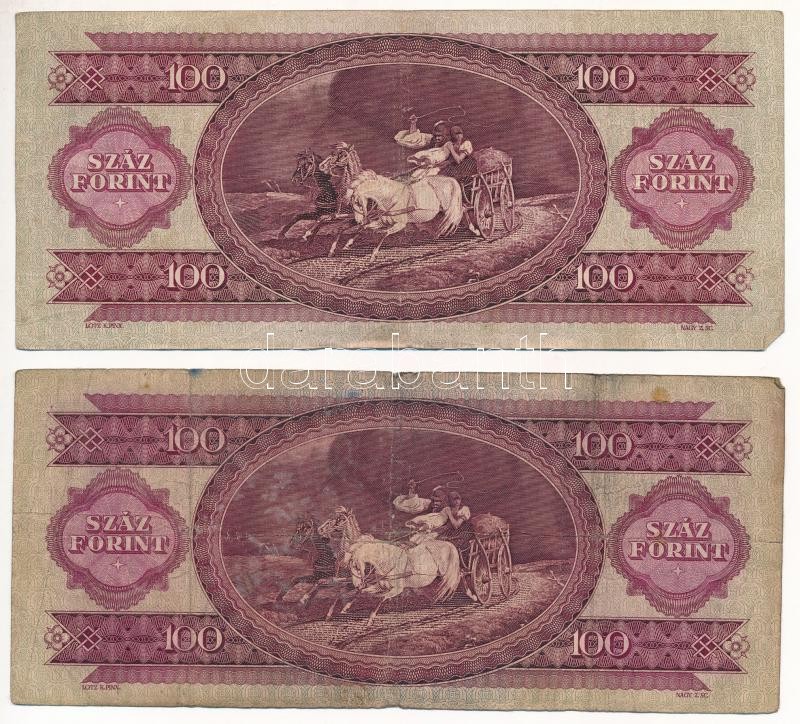 Adamo F28, F29 https://www.darabanth.com/de/425-Fernauktion/425.0/Numismatik/Ungarische-Banknoten~1500007/1949-100Ft-5x-plus-1957-100Ft-TIII-III--Adamo-F28-F29~II2712273