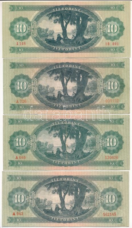 1962-1975. 10Ft (4db/3xklf) + 1986. 50Ft + 1989. 50Ft T:III,III- https://www.darabanth.com/de/425-Fernauktion/425.0/Numismatik/Ungarische-Banknoten~1500007/1962-1975-10Ft-4db3xklf-plus-1986-50Ft-plus-1989-50Ft-TIII-III-~II2707803