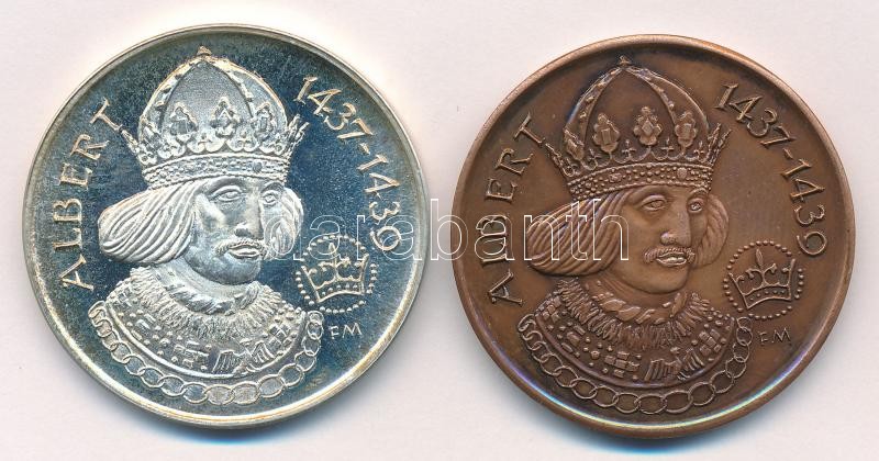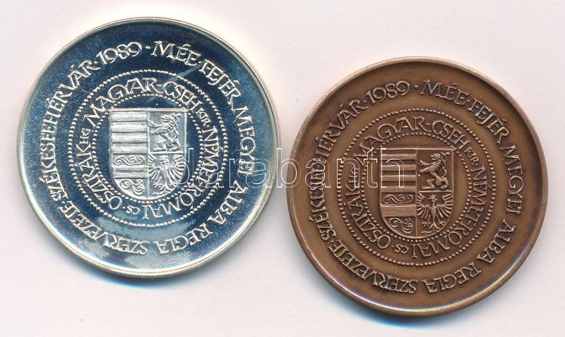Fritz Mihály (1947-) 1989. "MÉE Székesfehérvár / Albert király" jelzett Ag és bronz emlékérem pár (35,72g/0.835/42mm) T:1,PP patina, fo., ujjlenyomat