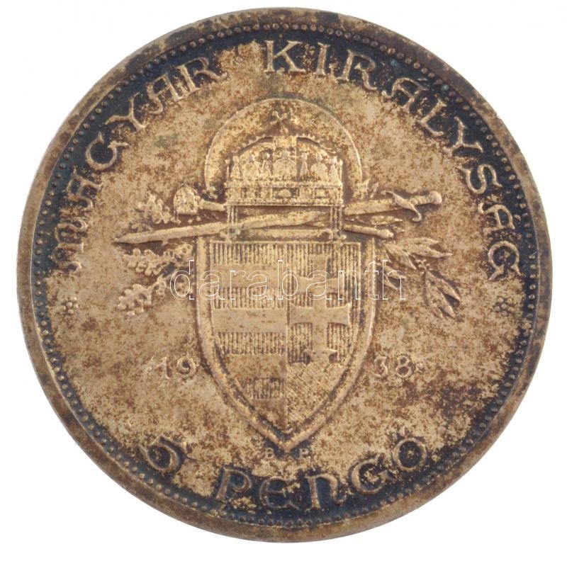 1938. 5P Ag "Szent István" fekete kopottas dísztokban T:1-,2... https://www.darabanth.com/de/425-Fernauktion/425.0/Numismatik/Ungarische-Munzen-und-Munzen-mit-ungarischem-Munzzeichen~1500008/1938-5P-Ag-Szent-Istvan-fekete-kopottas-disztokban-T1-2-patina-Adamo-P81~II2708699