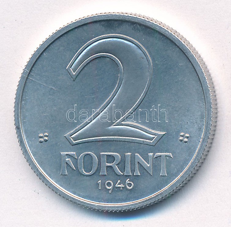 1946. 2Ft Al Artex utánveret T:1,1- Adamo F7 https://www.darabanth.com/de/425-Fernauktion/425.0/Numismatik/Ungarische-Munzen-und-Munzen-mit-ungarischem-Munzzeichen~1500008/1946-2Ft-Al-Artex-utanveret-T1-1-Adamo-F7~II2706910