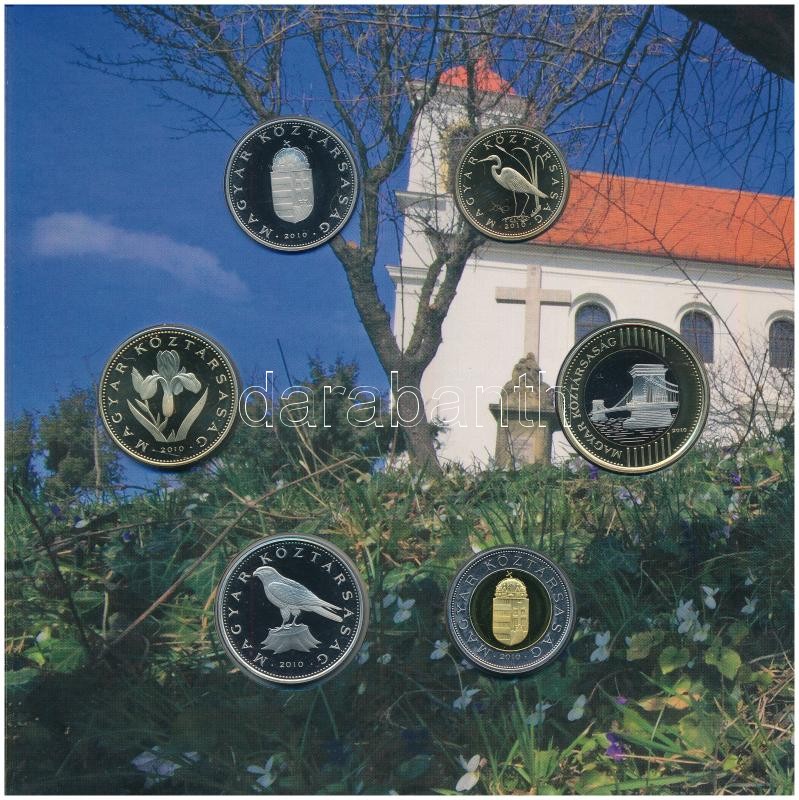 2010. 5Ft-200Ft (6xklf) forgalmi sor szettben + "Pécs 2010 - Európa Kulturális Fővárosa" Ag emlékérem, belső borító ragasztása kissé elengedett (10g/0.999/27mm) T:BU,PP patina Adamo FO44.4