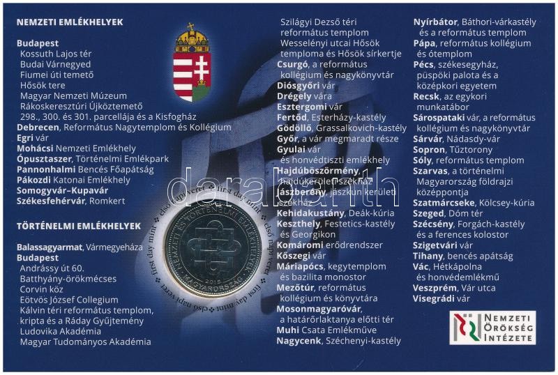 2015. 50Ft Cu-Ni "Nemzeti és Történelmi Emlékhelyek" első na... https://www.darabanth.com/de/425-Fernauktion/425.0/Numismatik/Ungarische-Munzen-und-Munzen-mit-ungarischem-Munzzeichen~1500008/2015-50Ft-Cu-Ni-Nemzeti-es-Tortenelmi-Emlekhelyek-elso-napi-veret-szamozott-emleklapon-0~II2710708