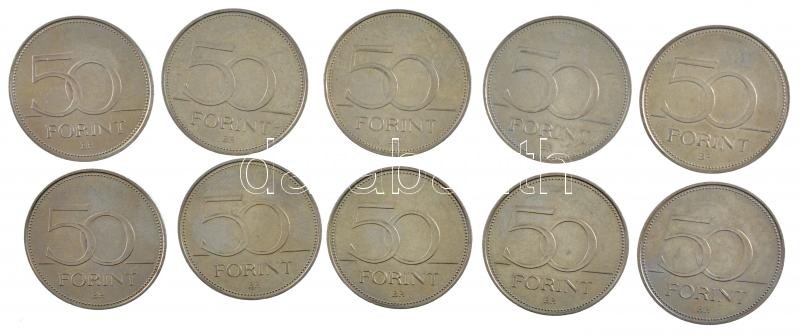 2016. 50Ft Cu-Ni "Hetvenéves a forint" (10x) T:1-,2 https://www.darabanth.com/de/425-Fernauktion/425.0/Numismatik/Ungarische-Munzen-und-Munzen-mit-ungarischem-Munzzeichen~1500008/2016-50Ft-Cu-Ni-Hetveneves-a-forint-10x-T1-2~II2690189