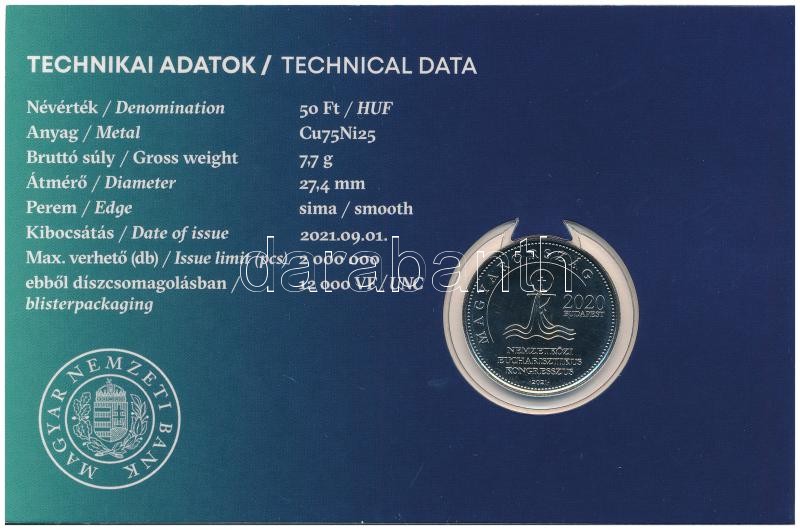 Beschreibung: 2021. 50Ft Cu-Ni "52. Nemzetközi Eucharisztikus Kongresszus" elsőnapi veret számozott emléklapon "11591" T:1