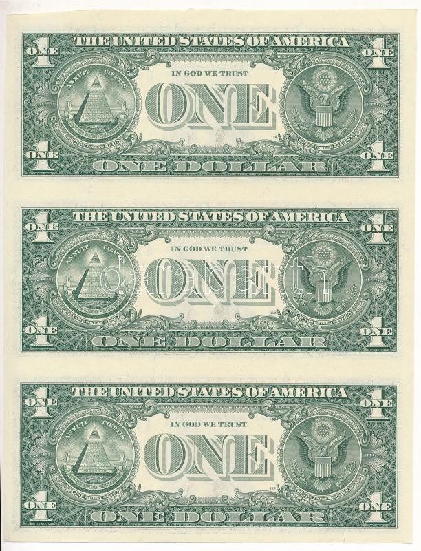 USA 2006. 1 Dollar "Anna Escobedo Cabral - Henry Merritt Paulson" with green seal, 3pcs in one unfolded sheet C:UNC,AU miscut on the upper part of the banknote