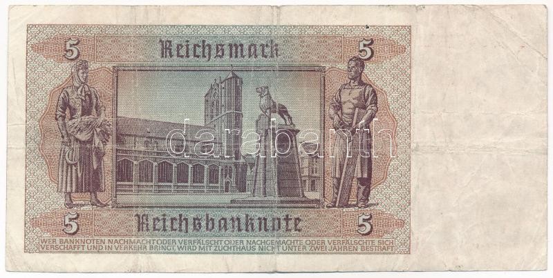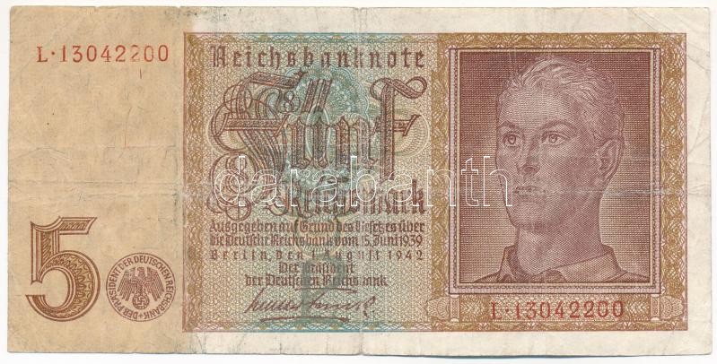 Beschreibung: Német Harmadik Birodalom 1942. 5M "L 13042200" T:III folt, kis szakadások