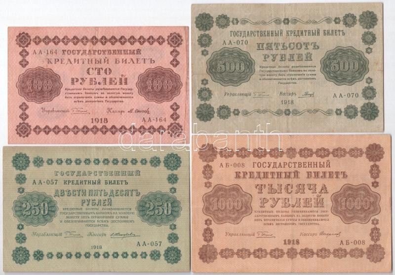 Beschreibung: Szovjetunió / Orosz Szocialista Szövetségi Szovjet Köztársaság 1918. 100R + 250R + 500R + 1000R T:III