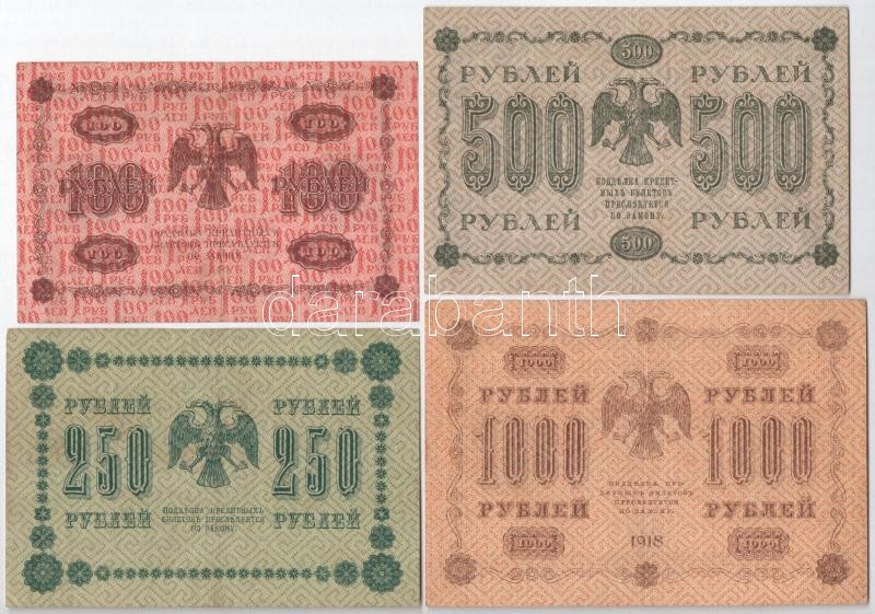 Soviet Union / Russian Socialist Federated Soviet Republic 1918. 100 Rubles + 250 Rubles + 500 Rubles + 1000 Rubles C:F