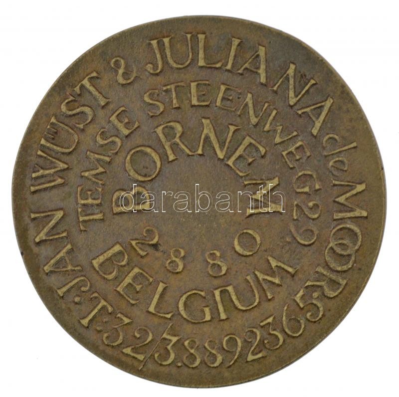 Belgium DN "Jan Wüst & Juliana de Moor" kétoldalas, öntött bronz névjegyérem (44mm) T:2 Belgium ND "Jan Wüst & Juliana de Moor" two-sided cast bronze business medal (44mm) C:XF