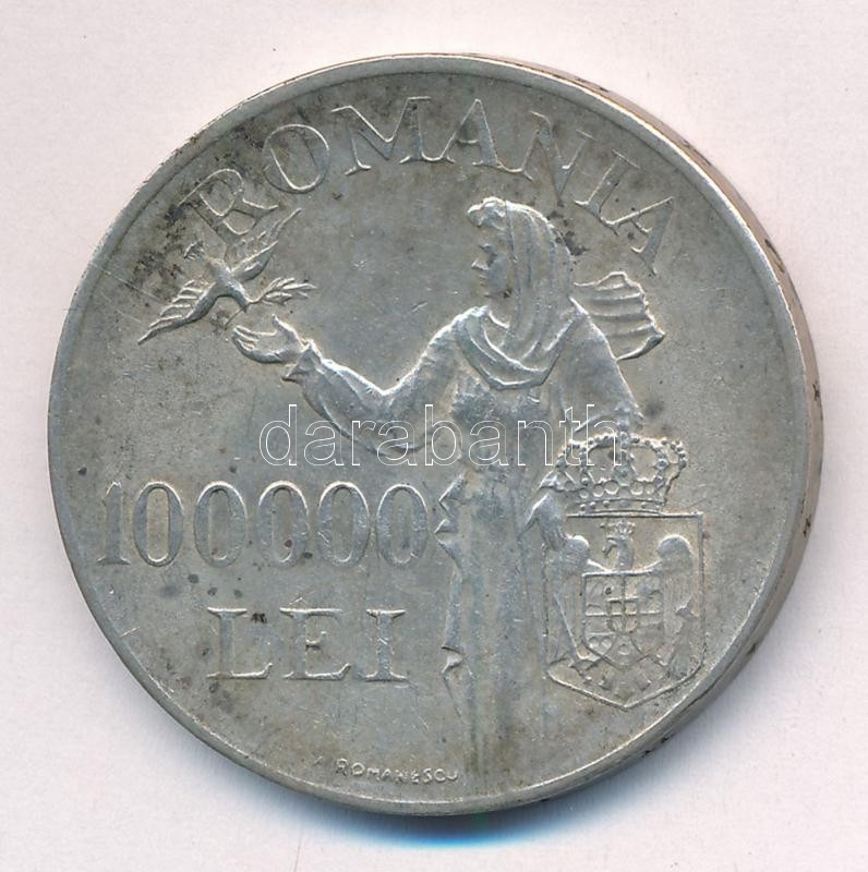 Románia 1946. 100.000L Ag T:1-,2 Romania 1946. 100.000 Lei Ag C:AU,XF ... https://www.darabanth.com/de/425-Fernauktion/425.0/Numismatik/Weltweit-Munzen~1500015/Romania-1946-100000L-Ag-T1-2-Romania-1946-100000-Lei-Ag-CAU-XF-Krause-KM2371~II2705734