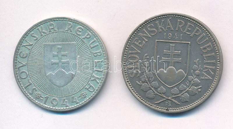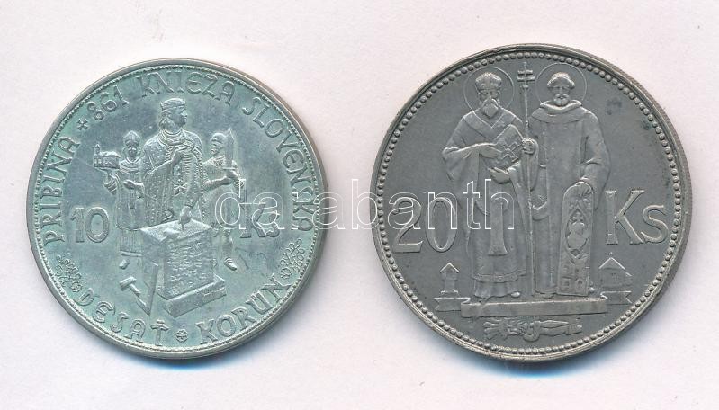 Szlovákia 1941. 20K Ag ""Cirill és Metód" forgalmi emlékérme + 1944. 10K Ag "Templom kereszt nélkül - Pribina gróf" forgalmi emlékérme T:2,2- patina, kis ph