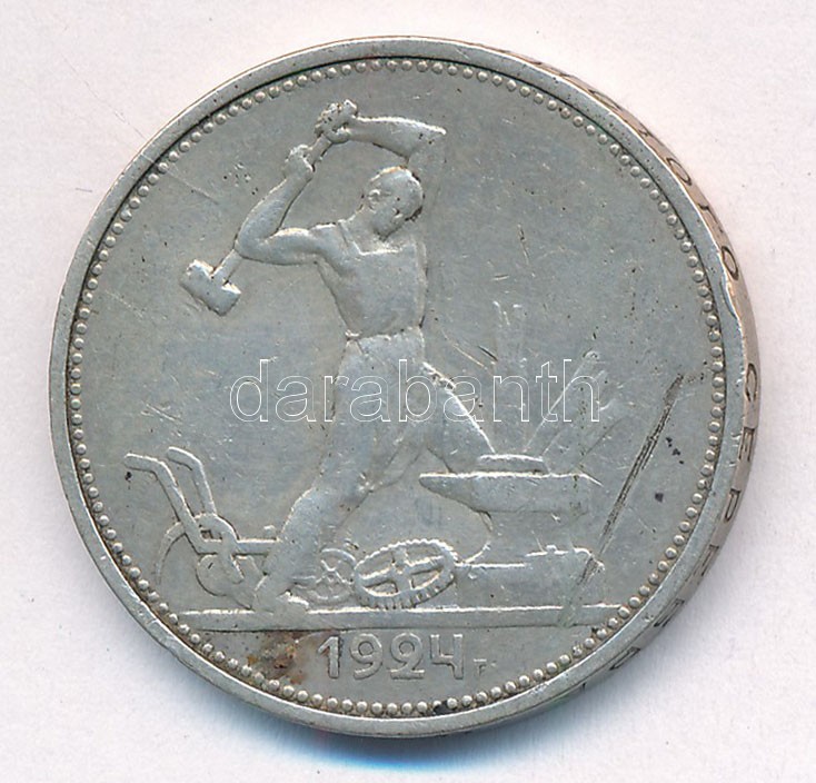 Beschreibung: Szovjetunió 1924. 1P (50k) Ag T:2- patina, karc Soviet Union 1924. 1 Poltinnik (50 Kopecks) Ag C:VF patina, scratched Krause Y#89.1