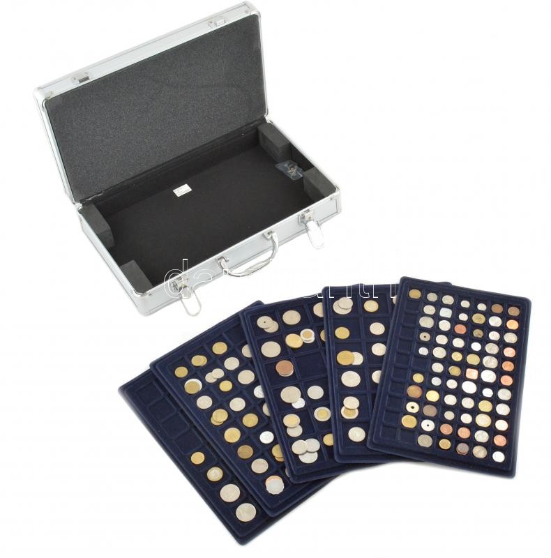 Zárható, újszerű állapotú éremtartó bőrönd 181db vegyes külföldi fémpénzzel klf országokból, 5db klf méretű érmék befogadására alkalmas érmetartó tálcával, két kulccsal, közte Amerikai Egyesül Államok, Suriname, Franciaország, Spanyolország, Mexikó + Hollandia 1919. 25c Ag T:vegyes, közte sok 1- Lockup, novel coinholder suitcase with 181pcs of mixed coins from diff countries, with 5 pcs of removable tray, with 2 keys, with USA, Suriname, France, Spain, Mexico + Netherland 1919. 25c Ag C:mixed, with lots of AU
