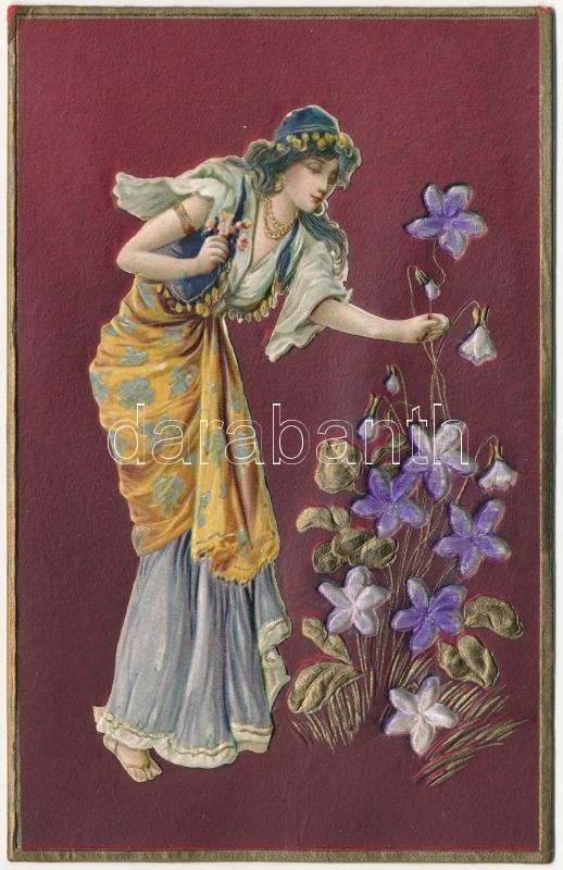 Beschreibung: 1907 Dombornyomott rátétes litho üdvözlőlap / Embossed litho greeting