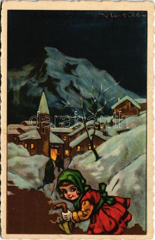 1930 Kellemes karácsonyi ünnepeket! / Christmas greeting art postcard ... https://www.darabanth.com/de/426-Fernauktion/426.0/Ansichtskarten/GruC39Fkarten-Feste~1500049/1930-Kellemes-karacsonyi-unnepeket-Christmas-greeting-art-postcard-with-girl-CCM-2516-s-Cast~II2715443