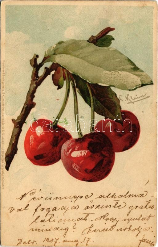 Beschreibung: 1907 Cherries. Meissner & Buch Künstler-Postkarten Serie 1212. "Aus dem Obstgarten" litho s: C. Klein (EK)