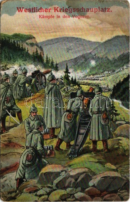 Beschreibung: 1916 Westlicher Kriegsschauplatz. Kämpfe in den Vogesen / WWI German military art postcard L&P 1847. (ázott / wet damage)