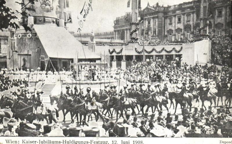 Beschreibung: 1908 Vienna, Wien; Kaiser-Huldigungs-Festzug / Franz Josef's anniversary festival (kopott sarkak / worn corners)